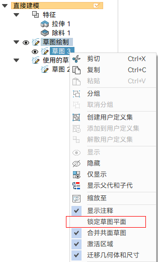 如果要解锁草图平面,可以在图形窗口中单击锁定平面指示符