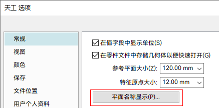 更改参考平面名称显示 选择以下方式之一,打开平面名称显示对话框。 在常规页(天工选项/零件和钣金环境),单击平面名称显示。 在路径查找器或图形窗口,右键单击参考平面,从关联工具条或右键菜单,选择平面名称显示命令。 在平面名称显示对话框,设置参数。