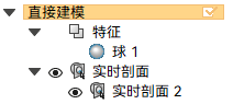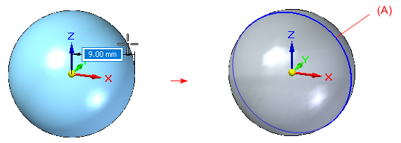 构造球特征 前提条件: 已进入零件直接建模环境。 操作步骤: 选择球命令。 在合适的位置单击以指定球的中心。Note: 可设置命令条上的关键点选项以捕捉关键点。 如果当前文档已存在实体特征,则需要使用命令条上的添料/除料选项来指定当前正在创建的实体是对已有实体执行添料还是除料操作。 执行以下操作之一以定义球的半径: 移动光标,在合适的位置单击。 在编辑框中键入一个特定的半径值,然后按 Enter 键。 完成的球特征显示在路径查找器中。对于球特征,系统会自动创建实时剖面。上图中的蓝色平分线(A)是实时剖面线,您可以使用此工具来移动或旋转球。有关更多信息,请参见使用实时规则。