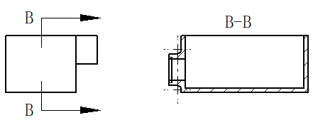 - 位于投射方向另一侧的几何体不会显示在剖视图中。