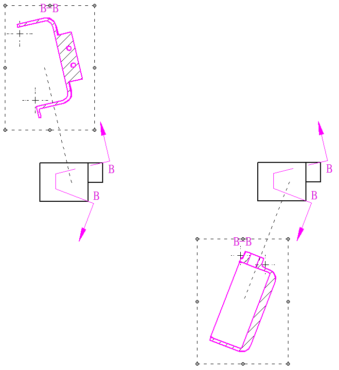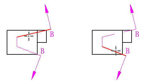 - 要更改投射方向,在父视图上单击剖切符号,然后从关联工具条选择翻转方向命令。