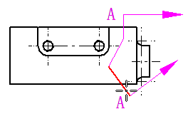 - 如果剖切面的第一条线与最后一条线不平行,则单击第一条线或最后一条线以定义剖视图的折角。