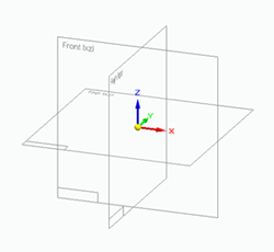 在参考平面上显示平面方位视图。 例如,Front、Top 和 Right。