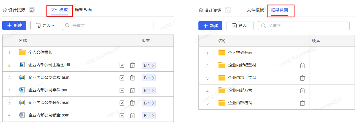 - 个人文件模板和个人框架截面文件夹均为系统内置,不可重命名和删除。