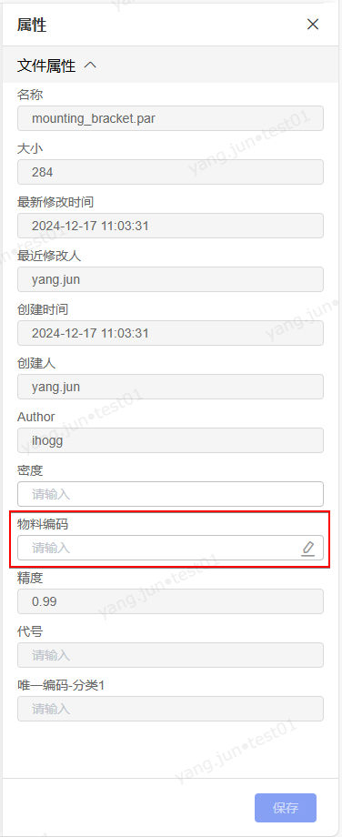 唯一编码功能用于对云盘中的3D模型文件进行唯一性标识。在天工云CAD中,企业管理员可以指定文件的某个属性作为唯一编码。例如,可以指定图号作为唯一编码,或指定物料编码作为唯一编码。此外,企业管理员还需要指定编码规则。在企业成员修改编码后,系统会校验编码的唯一性。